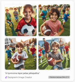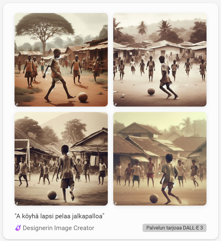 “Hyvinvoiva lapsi pelaa jalkapalloa” ja “Köyhä lapsi pelaa jalkapalloa”.